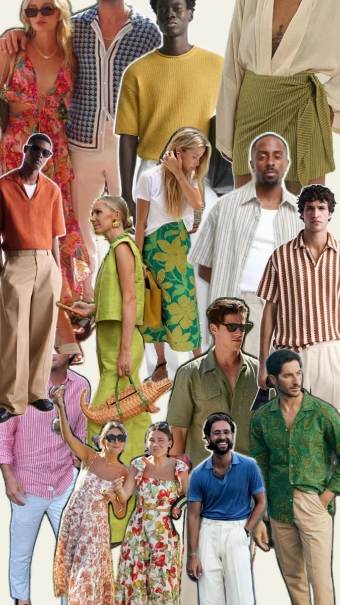 Flowy dresses, light linens, open-collar shirts, soft knits are all perfect. Feel free to play with colour and prints, there is no specific palette you need to follow, the colour is totally up to you!